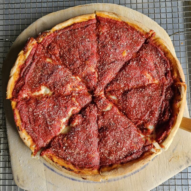 Your favorite crust layered with a specially blended pizza sauce waiting for your choice of our premium toppings | Thin & Crispy (Our Specialty) | Double Crust (Thick & Crispy) | Pan Crust* (Thick & Fluffy) | Pan Crust available on 12"